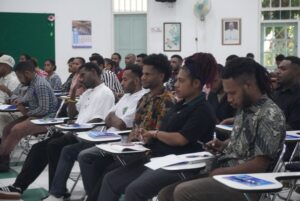 Pada sesi terakhir hari ketiga, hasil diskusi kelompok dipaparkan oleh masing-masing kelompok; Hasil diskusi memberikan harapan atas penguatan dari masing-masing mahasiswa yang dituangkan dalam paparan tersebut; Salmon Okbirok mahasiswa Teknologi Informasi – program studi Sistem Informatika dari kelompok 5 menyampaikan bahwa; Kedepan kami akan saling bekerjasama dan mengingatkan tujuan datang dan studi di Jawa, untuk menempuh pendidikan tinggi dan mencapai gelar sarjana. ***jhe saksono 002